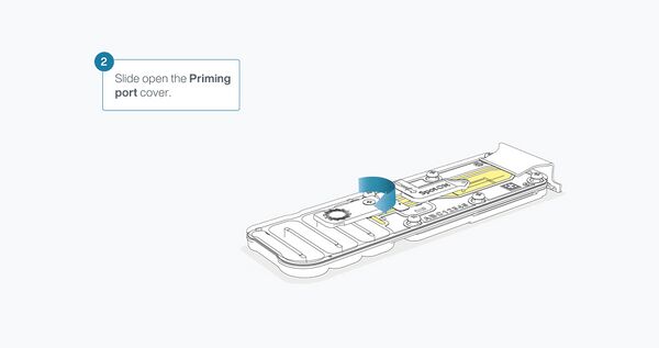 3. After opening the priming port, check for a small air bubble under the cover. Draw back a small volume to remove any bubbles: